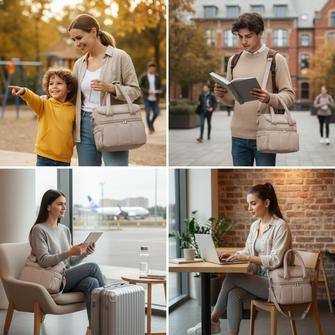 - For the student → stylish enough for class, practical enough for laptops, notebooks, and snacks.