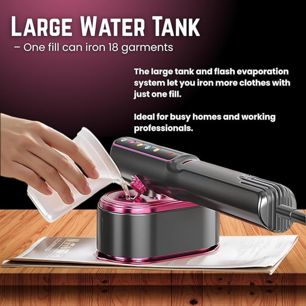 💧 180ml Water Tank – Up to 12 minutes steam.